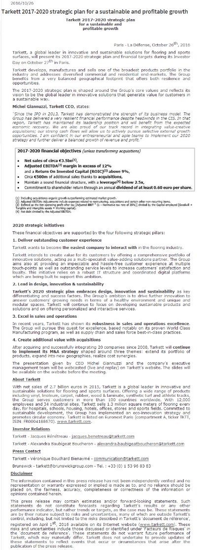 得嘉集團(tuán)是一家提供創(chuàng)新及可持續(xù)發(fā)展解決方案地板及運(yùn)動(dòng)地面的全球領(lǐng)導(dǎo)者, 2016年10月27日得嘉集團(tuán)將在投資者日在巴黎發(fā)布其2017 - 2020年戰(zhàn)略計(jì)劃和財(cái)務(wù)目標(biāo)。