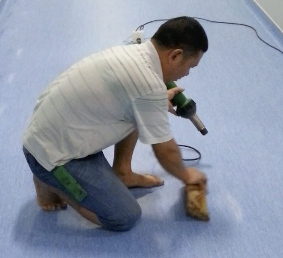 1. 因?yàn)榇娣挪划?dāng),造成膠地板變形,安裝時(shí)需要多費(fèi)功夫修復(fù)鼓起膠地板 ![]() 存放不當(dāng)造成PVC地板變形 2. 需要先用焊槍烤軟地板 ![]() 用焊槍烤軟PVC地板